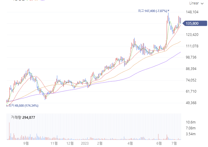 동일업종의 PER 22.01배인 반면 한화에어로스페이스는 23년 7월 현재 12.03에 그치고 있다.