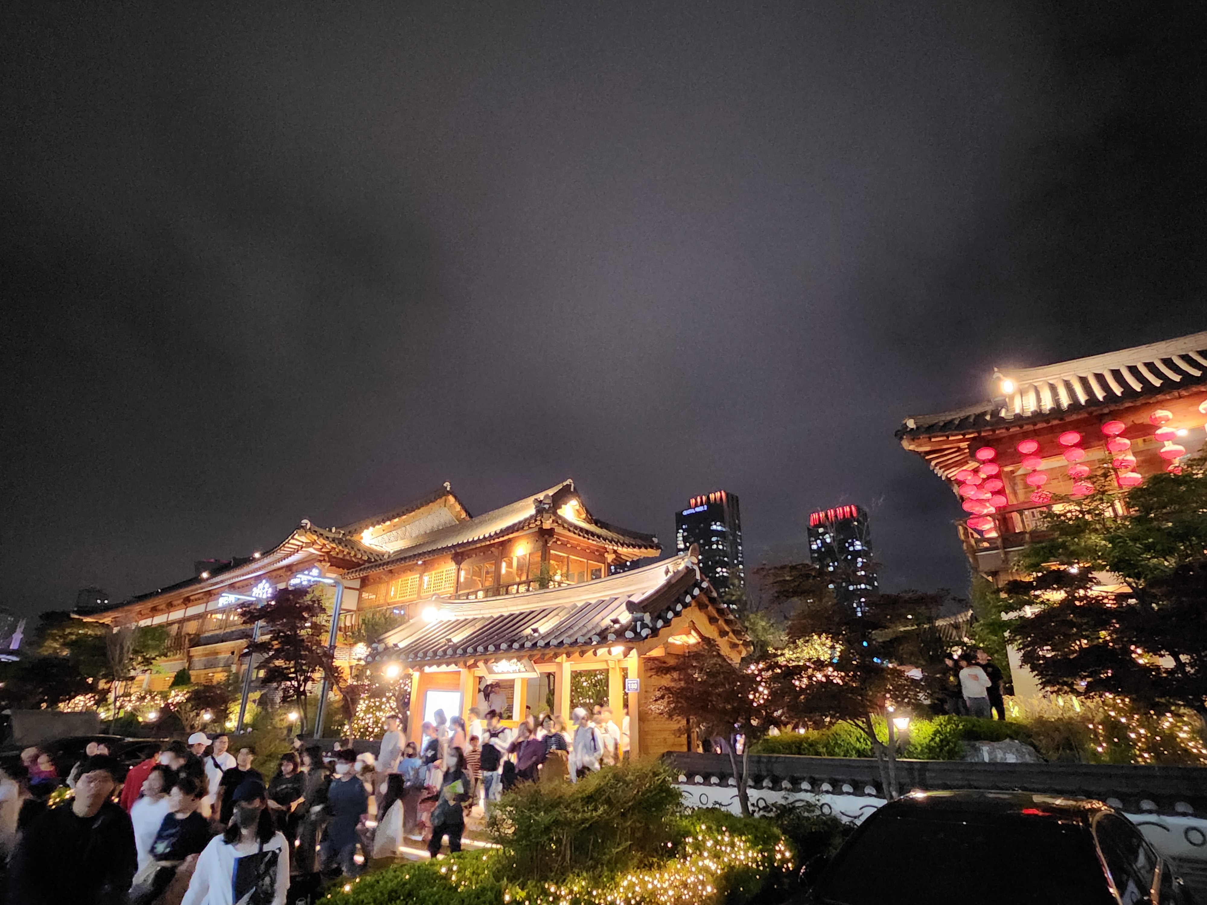 운이 좋게 드론 공연이 있는 주간에 예약을 했다. 그리고 한옥마을에는 식당, 까페가 모여있는데 낮에도 밤에도 좋다.
