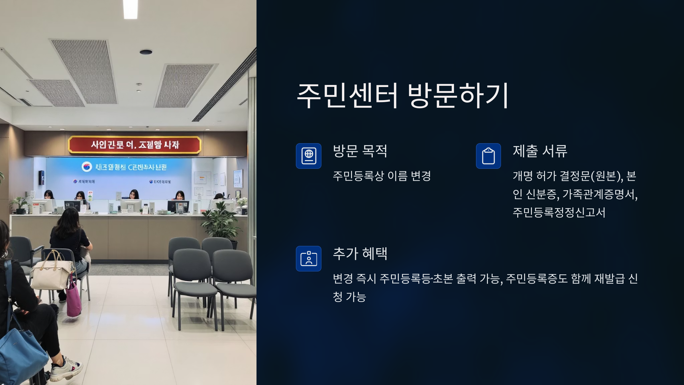 가장 먼저 해야 할 일! 개명 내용을 주민등록에 반영해야 합니다.